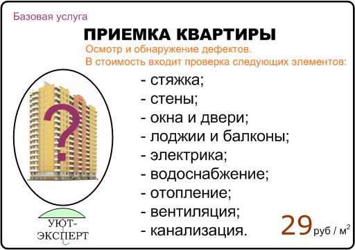 Цены на услуги по Профессиональной приемке квартир :